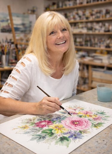 I’ve been drawn to making art for many years, but retirement has given me the freedom to really dive in. I enjoy working in watercolor, pastel, oil, and colored pencil, choosing whatever medium best fits the mood of a piece. I especially love creating art that becomes a meaningful gift or a cherished part of someone’s home. Outside the studio, I trade my paints for dancing shoes as a country ballroom dancer.